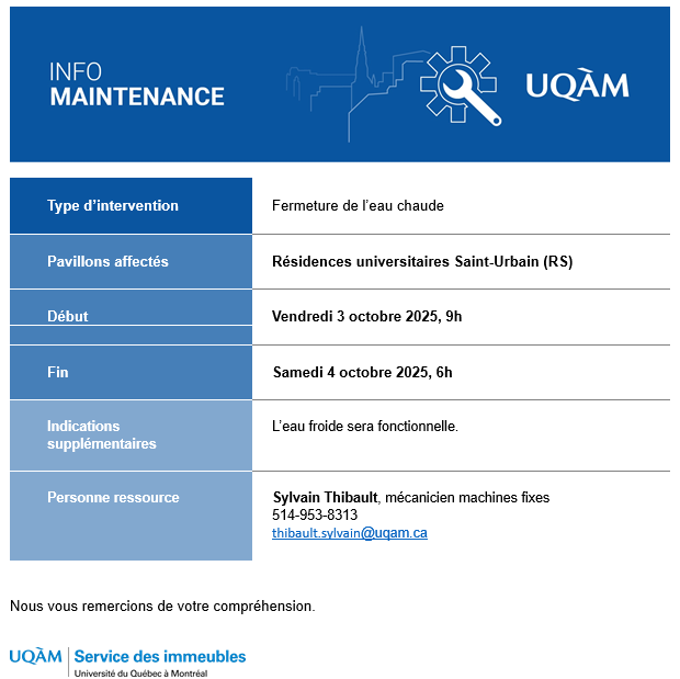 Résidences universitaires Saint-Urbain (RS) Laisser un commentaire Annuler la réponseVotre adresse courriel ne sera pas publiée. Les champs obligatoires sont indiqués avec *Commentaire * Nom * Courriel * Site web Enregistrer mon nom, courriel et site web dans le navigateur pour la prochaine fois que je commenterai.